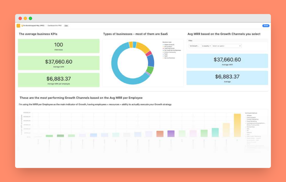 👉 Easy filter the data by business type, main growth method, MRR, and MRR per employee